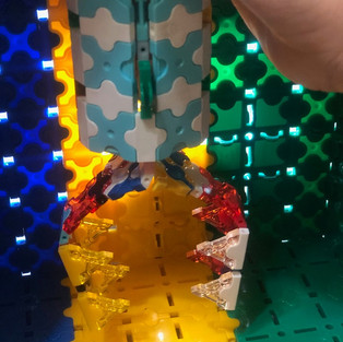 娃娃機設計有「投幣口」、「爪子」、「取貨口」,以上皆設有機關,是可活動的娃娃機。「投幣口」設有卡榫連接娃娃機,並可取下上方設有蓋子,可取出錢幣。「爪子」可前後左右移動,並設有機關可上下張開爪子以夾取物品。「取貨口」設計另一種蓋子,往上掀便可順利拿取物品。配件:錢幣、禮品(球體、正方體、手環)皆以LAQ組合而成。